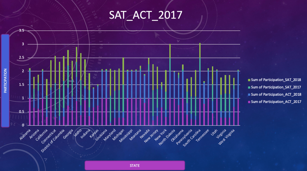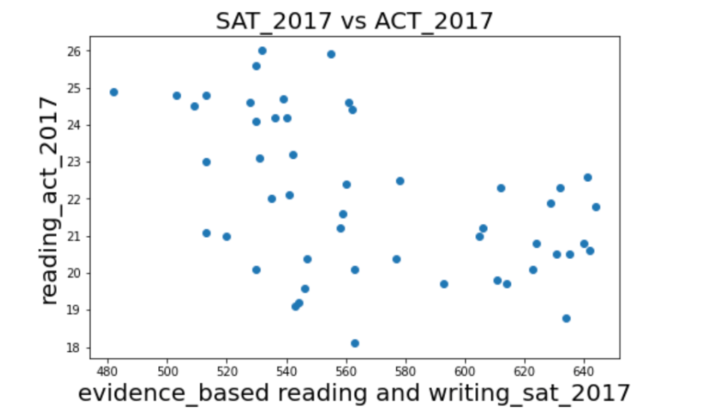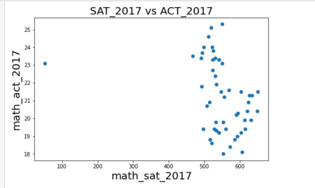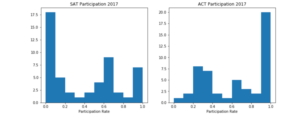 After more research, I was able to find out that some states had high participation rates in SAT, they had low participation in ACT. And states that had high participation rates in ACT, had low participation in SAT.